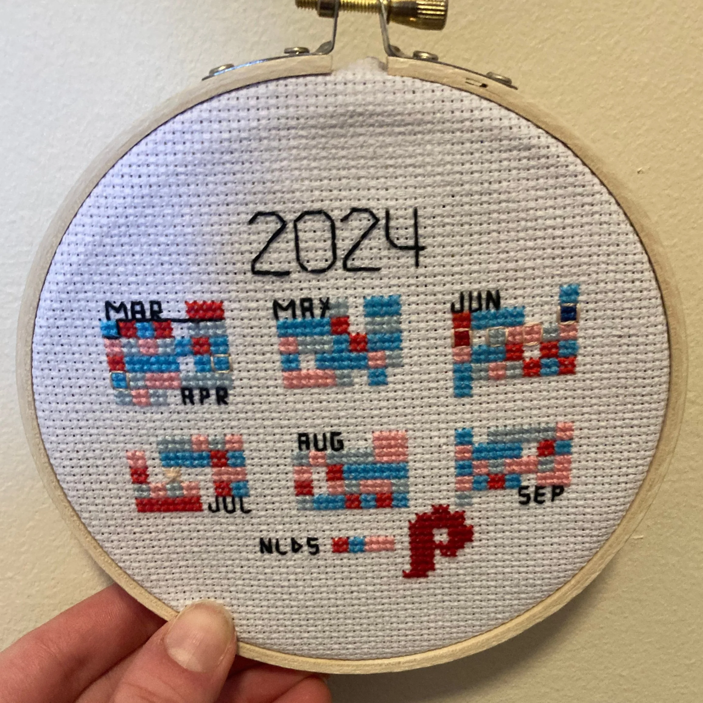 This blog-keeping also reminded me that I had a Phillies cross stitch project to finish. This is the whole 2024 season where reds are losses (brighter colors for home games) and blues are wins. Squares outlined in gold we saw in person and the two slightly darker red/blue games are the London Series. I’d like to do this again for 2025 but I think I’ll put the logo up next to the year, it was a bit of an afterthought so I had to squeeze it in there. I may also do a similar project for the Red Sox, especially if we end up purchasing season tickets and going to a lot of games.