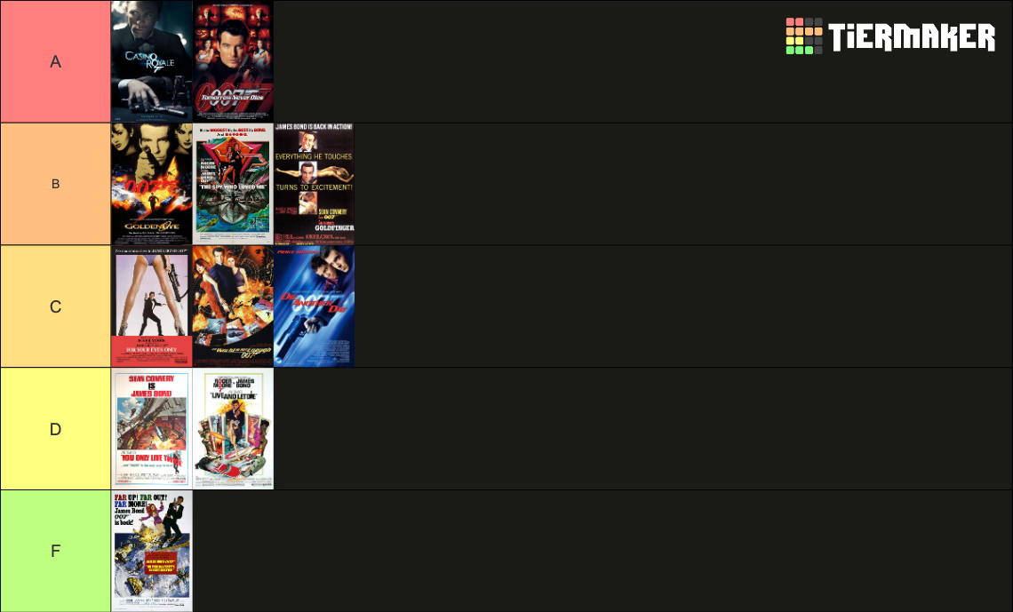 an objective ranking of all the James Bond movies we’ve watched in the past two months don’t roast me too hard there is a strong Lucas nostalgia element to the grading rubric