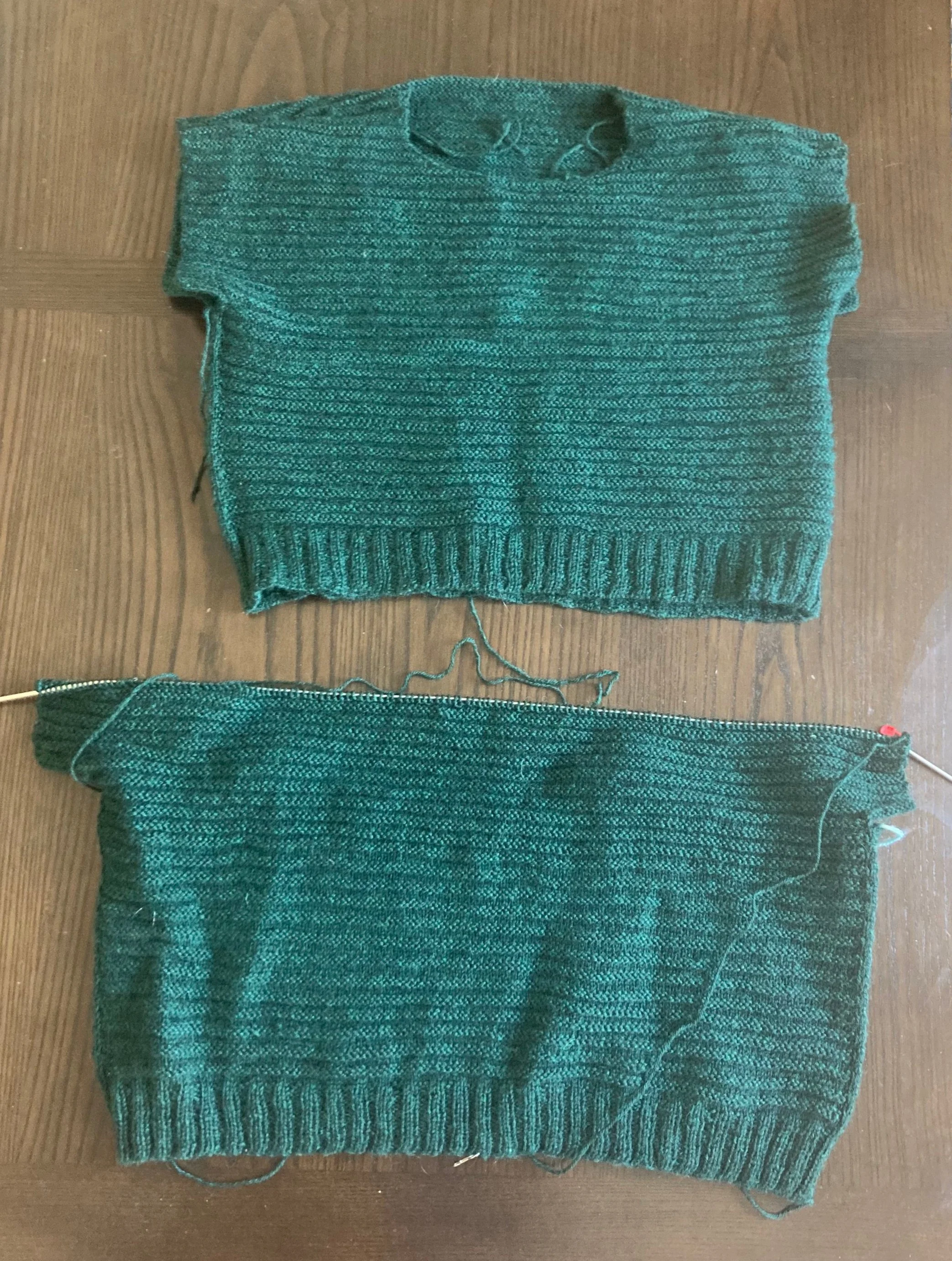 lmao stop look how far i got before realizing my gauge was absolutely WRONG! i did a swatch and everything so not 100% sure what happened here. a sweater for ants. but the second iteration is going much quicker since I already know the pattern. goal is to have this done by the fall so no real rush to get it finished now.